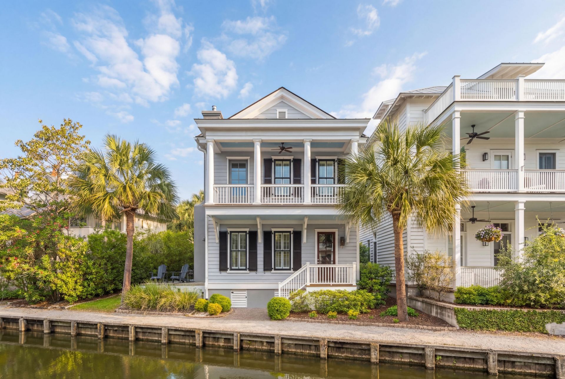 Enjoy living on the canal in beautiful I'On where ducks and turtles navigate between the two lakes. This stunning, move-in ready waterfront home was designed with gracious entertaining in mind. The light-filled living and dining area overlook the canal and open onto a courtyard complete with an outdoor fireplace. Entertain friends and family with dinners al fresco while enjoying Charleston's nearly year-round perfect weather. The kitchen is smartly designed with gorgeous cabinetry, stainless steel appliances, and granite and warm wood countertops. Dual primary suites, one upstairs fronting the canal, and one conveniently down, make the floor plan versatile for almost any household. Both the first floor and second floor primary suites offer large walk-in closets and well-appointed baths with dual vanities and spacious showers. An additional bedroom on the second floor also offers an en suite bath. In between the two bedrooms upstairs is a cozy den or media room for more casual living. The home also features a detached carriage house above the one-car garage and carport that adds an additional 450 square feet. This lovely space includes a living area, full kitchen and hook ups for washer and dryer and a separate bedroom and bath, perfect for guests or as a potential rental apartment. Other features of the home include a brand-new roof installed in 2026, hardwood floors throughout, and a laundry room located on the first floor. Less than ten minutes from downtown Charleston, this highly sought-after community provides residents with access to walking trails, parks, an Amphitheater, boat ramp and two lakes. A member's only club is also available with two pools, tennis and pickleball courts and gym facilities, as well as an onsite restaurant. At the front of I'On are several popular eateries and bars, a salon and other commercial establishments.